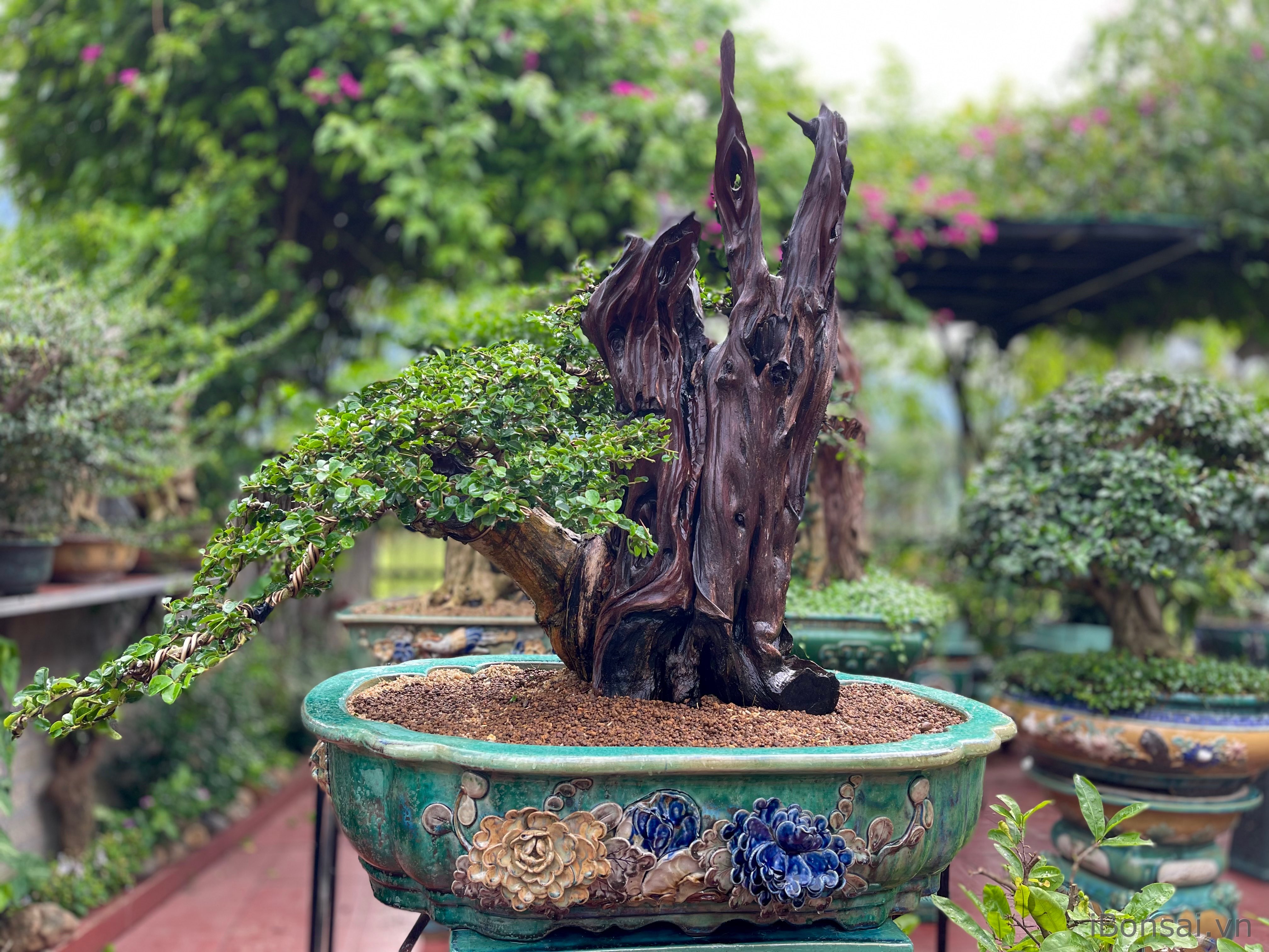 Ghi chú: Cây Bonsai là một cá thể sống, ngoài vẻ đẹp của hiện tại nó còn mang một vẻ đẹp khác của quá khứ, sự kỳ công của Nghệ nhân và vết hằng in dấu thời gian. Tạo ra một tác phẩm, cập nhật khi có sự thay đổi như ra hoa, xuống lá khoe xương, thay chậu hoặc vừa tỉa dọn xong cũng mang cho người xem cái nhìn mãn nhãn.